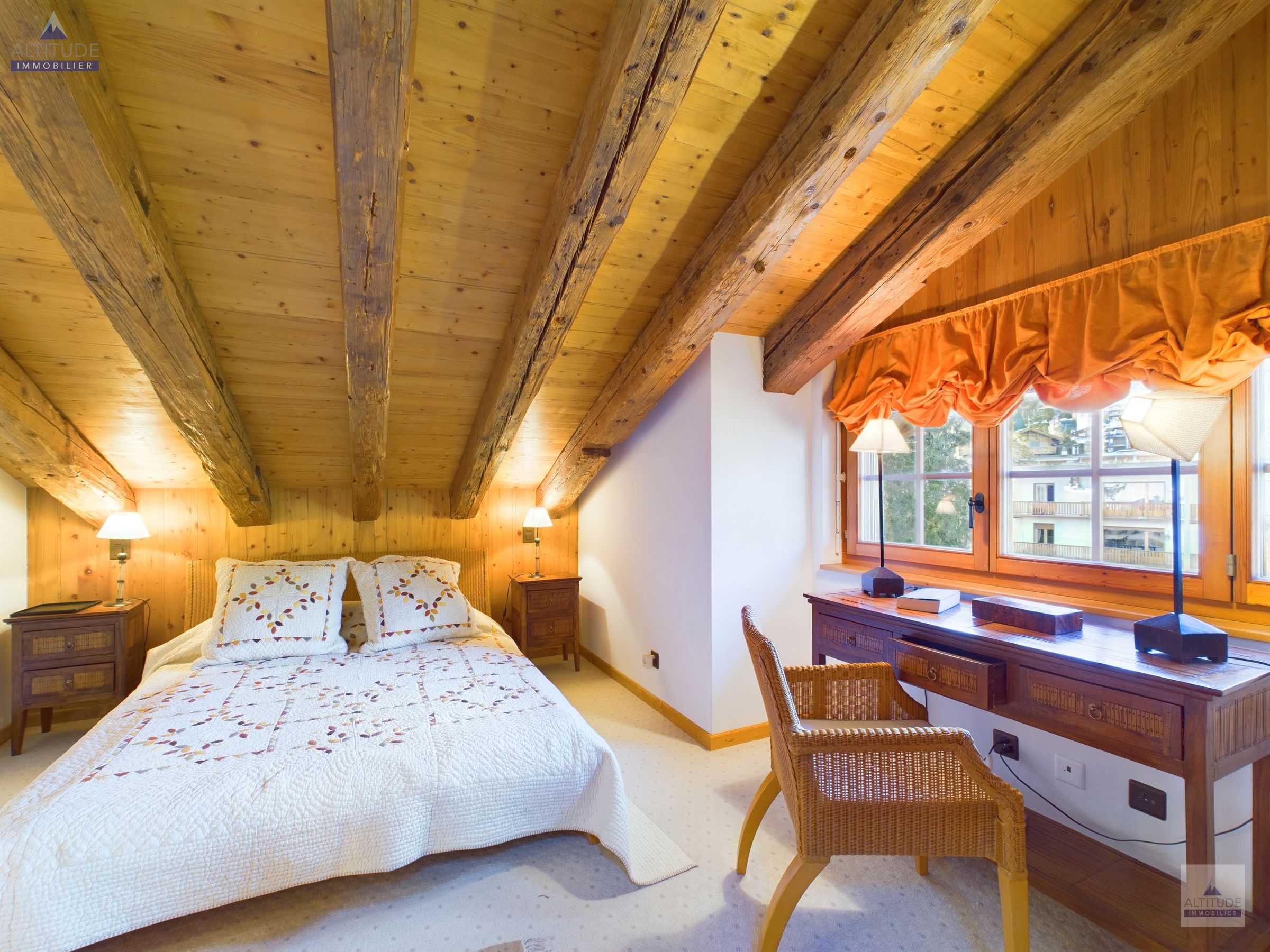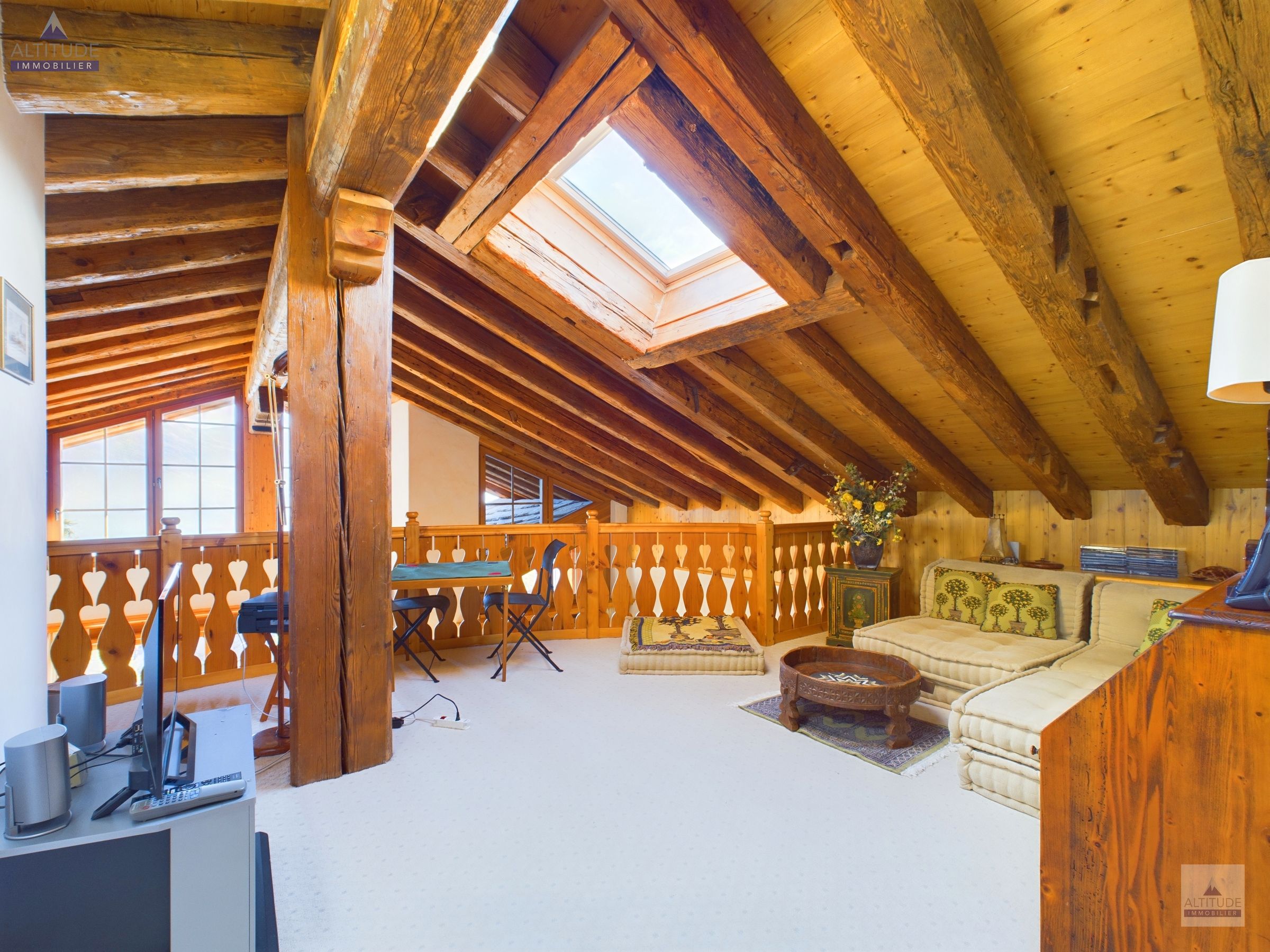Bien rare à la vente. Situé à seulement quelques minutes à pied du centre de la station, ce magnifique duplex en attique, dans un chalet de haut standing, bénéficie de finitions de grande qualité, notamment en vieux bois. Ce bien de 6.5 pièces dispose de 5 chambres, chacune avec sa salle de bains attenante.