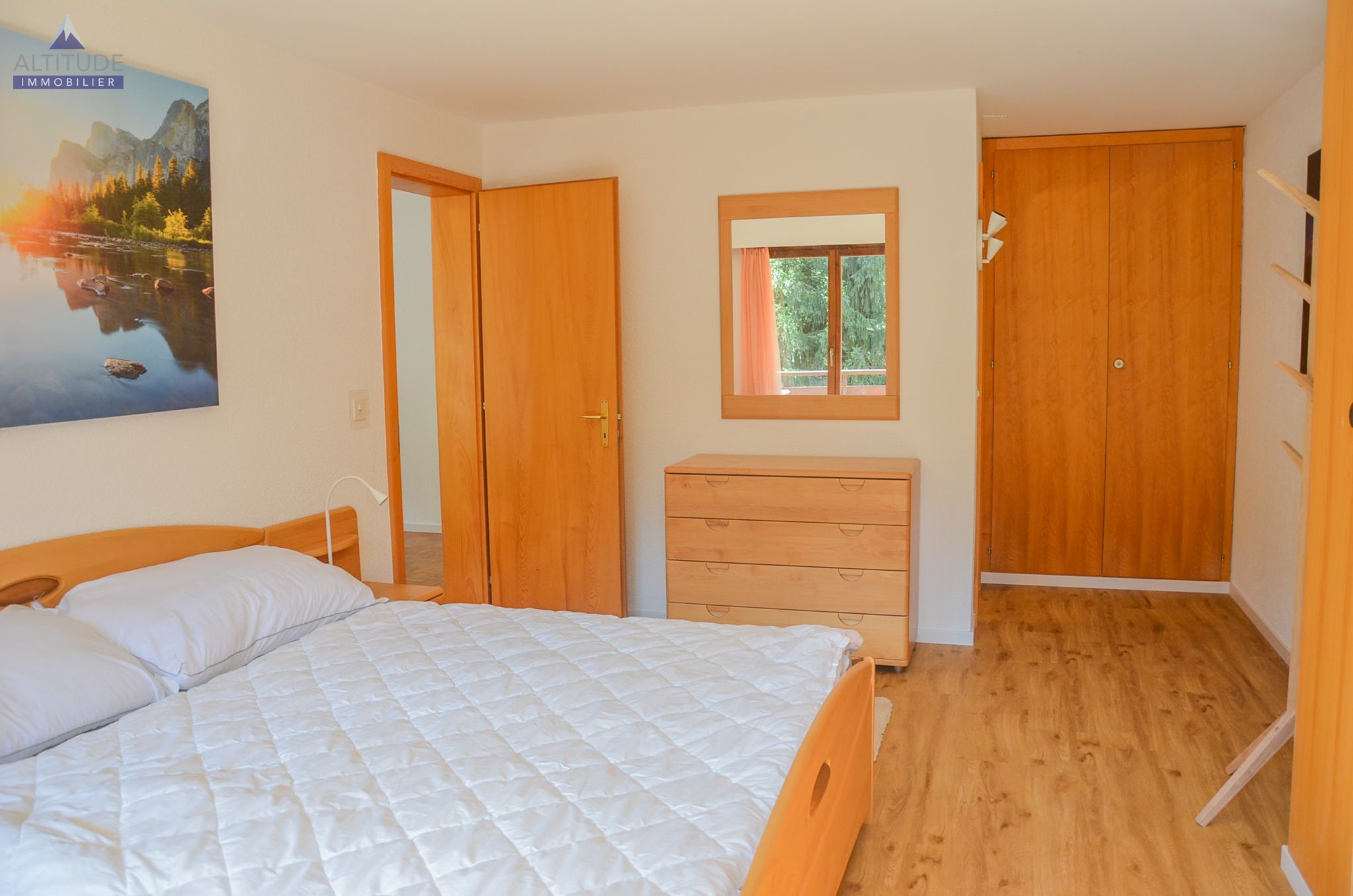 - Une chambre parentale avec accès au balcon sud, lit double, commode et armoires murales